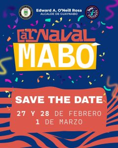 El alcalde de Guaynabo, Edward O’Neill Rosa, anunció que la celebración del Carnaval Mabó, se llevará a cabo durante el fin de semana del viernes, 27 de febrero; sábado, 28 de febrero; y domingo, 1 de marzo, con una agenda llena de actividades culturales, música, comparsas, desfile de las reinas y entretenimiento para el disfrute de toda la familia.