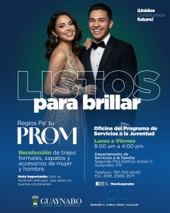 Guaynabo, P.R. – El Municipio de Guaynabo, a través del Departamento de Servicios a la Familia y su Programa de Servicios a la Juventud, anunció el inicio de la campaña “Regios Pa’ tu Prom”, una iniciativa dirigida a recolectar trajes formales, zapatos y accesorios para jóvenes que se preparan para la temporada de graduaciones, informó el alcalde Edward O’Neill Rosa.
