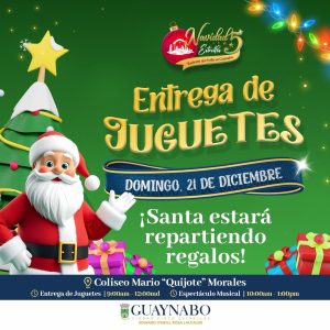 El alcalde de Guaynabo, Edward O’Neill Rosa, anunció que el domingo, 21 de diciembre se realizará la gran Entrega de Juguetes en el Coliseo Mario “Quijote” Morales, donde Santa estará repartiendo regalos y mucha ilusión navideña.