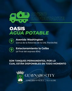“Nuestra prioridad es asegurar que ningún residente de Guaynabo se quede sin acceso a agua potable durante esta emergencia. Hemos trabajado en conjunto con la AAA y nuestras dependencias municipales para identificar puntos estratégicos de distribución y apoyo, de manera que podamos responder con eficiencia y sensibilidad a las necesidades de cada comunidad”, expresó el alcalde Edward O’Neill Rosa.